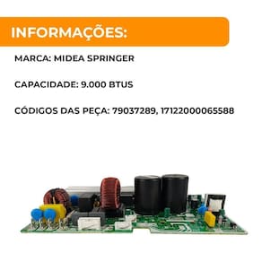 Placa eletrônica de controle da unidade condensadora de ar-condicionado Midea Springer, garantindo desempenho e durabilidade no sistema inverter.