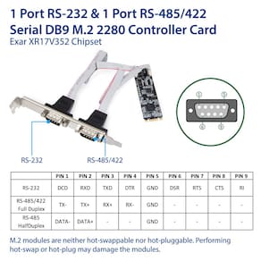 Placa controladora de chave IO CREST de 2 portas RS-232 DB9 Serial M.2 B+M SI-ADA15070 - Operação de leitura/gravação de dados de 32 bits.