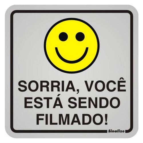 Placa de Alumínio Auto-Adesiva 12x12cm Sorria Você Esta Sendo Filmado – 900 AJ – SINALIZE