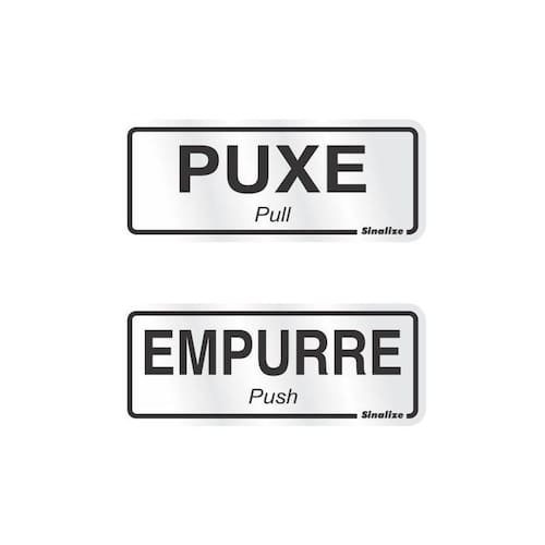 Detalhes: - Alumínio Anodizado 0,5 mm de espessura - Formato 06 x 15cm Impressão em Aluprint, Fixação Auto-Adesiva - Indicado para locais que não recebam excessiva luz solar - Durabilidade de 36 meses uso interno e/ou 12 meses uso externo - Aplicabilidade: Limpe a superfície onde será aplicada a sinalização utilizando álcool, retire o liner do verso do produto e aplique no local.