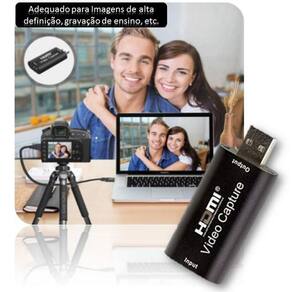 A mini placa de captura, captura áudio e vídeo via hdmi, enviando os sinais para o seu computador.