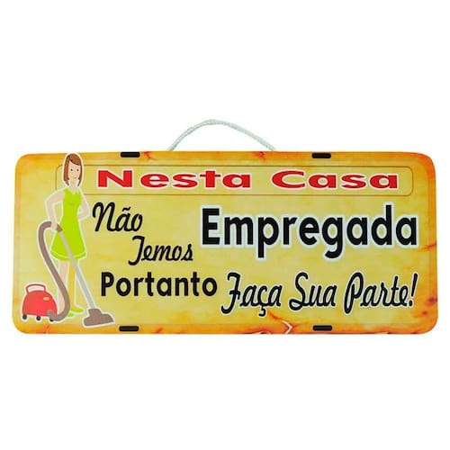 Placa de carro decorativa em madeira - sem empregada - faça sua parte Placa de carro para parede em madeira decorativa Placa de carro decorativa em madeira ecológica e sustentável de alta qualidade e durabilidade é indicada para decorar sua casa, área do churrasco, salas e varandas com muita criatividade e estilo. Esta placa decorativa vai deixar o seu ambiente favorito mais leve e com estilo, a parte traseira conta com suporte para dependurar o produto, imagem com impressão digital auto brilho no vinil em alta resolução. Deixe o seu cantinho favorito da casa, áreas gourmet, salas e varandas com um clima agradável, alegre e descontraído, sendo também uma ótima opção de presente.Dimensões em centímetros:- dimensões(cm): altura: 13,5 cm x comprimento: 30,5 cm x espessura: 3 mm.Características do produto:- confeccionado em madeira mdf ecológica de alta qualidade e durabilidade.- quadro com gancho para dependurar, cortado a laser e com imagem em vinil em alta resolução.- produzido por artesões profissionais seguindo um padrão de qualidade que atenda o gosto dos nossos clientesCuidados:- recomendamos o uso de pano levemente umedecido para sua limpeza.Garantia do produto:- o produto é muito bem acomodado dentro da caixa, e super embalado para evitar quebras, ainda assim possuímos um sistema de garantia e troca.Imagens meramente ilustrativas - produto artesanal, podendo variar de cor e/ou tonalidade Marca: Retrofenna Decor