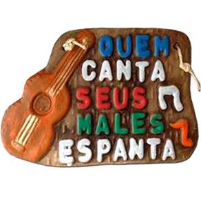 Placa de Churrasco Decorativa - Cantinho do Churrasco - Quem Canta Seus Males Espanta Placa Decorativa para Área de Churrasqueira - Quem Canta Seus Males Espanta Valor Unitário Placa Decorativa de Parede para Decorar Seu Cantinho do Churrasco em alto relevo confeccionada artesanalmente em gesso e pintada a mão. Linda peça de decoração para ornamentação de área de lazer, rancho, Varandas Gourmet, churrasqueira, Restaurantes e muito mais. Sendo Também um lindo presente para os amigos. Decore e Surpreenda-se com essa divertida placa, com certeza o Ambiente irá ficar mais Alegre e Descontraído. Deixe a sua criatividade fluir e misture cores, materiais, formatos, tamanhos, com um lugar único e personalizado, além de ser uma ótima opção para presentear. Indicações: - Adegas - Áreas e Varandas Gourmet - Cozinhas / Decoração - Churrasqueiras - Home Bar / Pub´s /Boteco / Bbq - Restaurantes - Salas em Geral Medidas aproximadas: 25 x 17x 3 cm. Imagens Meramente Ilustrativas - O Produto pode variar meramente a cor. Marca: Retrofenna Decor