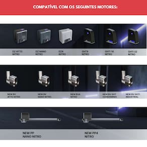 A linha Nitro, equipada com motores trifásicos de alto desempenho, traz a inovadora tecnologia Nitro Inverter Technology, que possibilita até 4 vezes a velocidade dos automatizadores tradicionais, com abertura a partir de 3 segundos. Com um exclusivo sistema inteligente que aplica um torque extra nas engrenagens ao final do curso e realiza o travamento automático, reduzindo ou zerando possíveis folgas entre o portão e o batente.