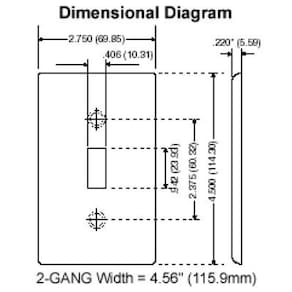 Placa de cubierta sin dispositivos para caja de termoconformado Leviton de tamaño estándar y 2 espacios, modelo 78025, color almendra claro. - Acentúa cualquier revestimiento de pared con una amplia selección de colores y acabados. - Cara lisa y bordes redondeados que resisten la acumulación de polvo. - Resistente a la decoloración, manchas, grasa, aceite, solventes orgánicos, humedad y rayones. - Marca reconocida: Leviton.