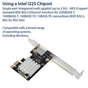 IO CREST Placa de interface de rede PCI Express PCI-E Ethernet de 2,5 Gigabit 10/100/1000/25000 Mbps RJ45 LAN Chipset Intel I225, preto (SY-PEX24076)
