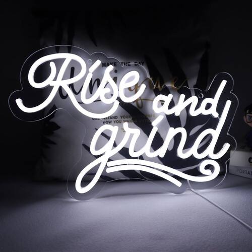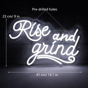 JFLLamp Sinais de néon Rise and Grind para decoração de parede, luzes de néon para quarto, placas de negócios LED adequadas para homem, caverna, bar, pub, restaurante, presente de Natal, arte, 5 V, adaptador de alimentação 16,1 x 9 polegadas (branco) - Spark Your Joie De Vivre! Transmita uma atitude perante a vida e crie uma atmosfera de festa alegre com esta placa de neon Rise and Grind! Perfeito para decorar sua sala de estar, quarto ou estação de trabalho com seu escritório - Fácil de instalar: Montado em uma placa de base de corte de contorno transparente de alta qualidade com dois furos pré-perfurados (envie uma corrente para pendurar), é fácil de instalar e fácil de mover. Basta pendurar as placas de neon na parede e você experimentará uma atmosfera única. - ?Segurança e durabilidade?. Em comparação com a placa neon de vidro antiquada, o tubo de neon não gera calor e pode ser tocado com confiança. Esta placa de luz LED ecológica (16,1 x 9) é alimentada por um adaptador de energia de 5 V (1,5 metros) com um design inteligente que suporta ajuste de brilho para uso prolongado. (Adaptador de alimentação não incluído) - 🎁 Presente e decoração perfeitos 🎁: Os sinais de LED podem decorar seu estilo pessoal e criar uma atmosfera única. Adicionar placas de luzes neon "Rise and Grind" pode animar qualquer espaço opaco e é uma decoração essencial para festas. Também é um presente ideal para casamentos, aniversários, Dia dos Namorados, Natal e outras ocasiões comemorativas, perfeito para quem gosta de uma atmosfera divertida e interessante. - Garantia de serviço: a JFLLamp é especializada na produção de placas neon e está comprometida em fornecer produtos e serviços de alta qualidade para qualquer insatisfação com o produto, e resolveremos isso para você o mais rápido possível.