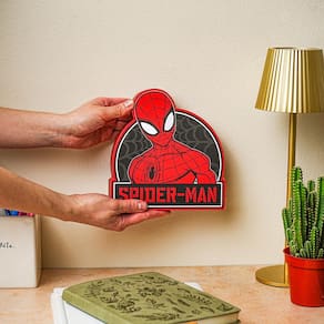 — Design icônico do Homem-Aranha: adicione o estilo de lançar teias ao seu espaço com esta grande placa de parede de MDF recortada com o emblema clássico do Homem-Aranha e o design web. Um item essencial para os fãs da Marvel!