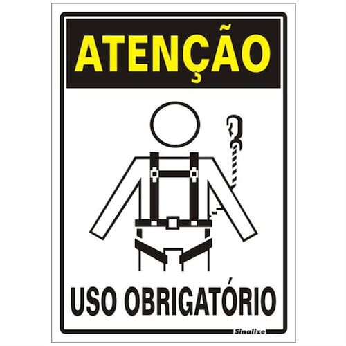 Placa de Poliestireno Auto-Adesiva 20x30cm Atenção Uso Obrigatorio de Cinto de Segurança – 250 AR – SINALIZE