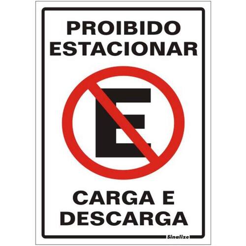 Placa de Poliestireno Auto-Adesiva 20x30cm Proibido Estacionar Carga e Descarga - 250 BB - SINALIZE
