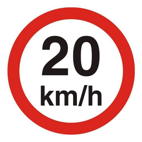 Placa de Poliestireno Auto-Adesiva 45x45cm Velocidade Maxíma Permitida 20Km/h – 300 AB – SINALIZE