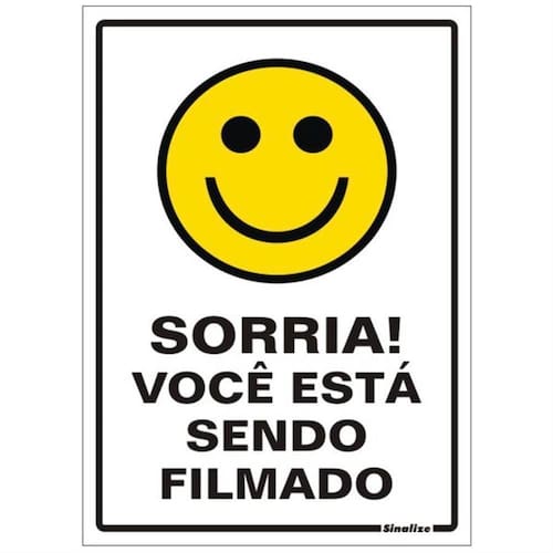 Placa de Poliestireno Auto-Adesiva 20x30cm Sorria Você Esta Sendo Filmado 250 AJ SINALIZE