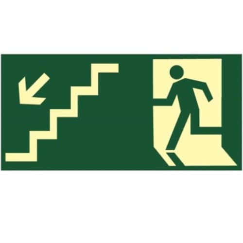 Placa de PVC Fotoluminescente Auto-Adesiva 15x30 Desca a Escada a Esquerda – 315 AG – SINALIZE
