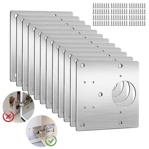 Os reparos são mais fáceis do que substituir dobradiças ou móveis novos, pois cobrem a área danificada autêntico e dão uma boa aparência. - ?Material de alta qualidade?A ferramenta de reparo Hing é feita de material de aço inoxidável escovado de alta qualidade, à prova d'água e à prova de ferrugem, forte e durável. pode ajudar a reparar a superfície das dobradiças danificadas. - ?Solução eficaz? Os armários de cozinha estão sujeitos à erosão da umidade, abertura e fechamento frequentes, ou a qualidade do material não é igual, resultando em dobradiças mal fixas, queda e impossível de instalar. Nossa placa de montagem de dobradiça pode resolver bem esses problemas e não requer substituição da porta do armário. - ?Design universal? Painel de reparo de dobradiça, operação frente e verso, portas e painéis laterais estão disponíveis. - ?Repare dobradiças e fácil de instalar? Quando os suportes nos armários começarem a ficar soltos, você pode consertá-los. Os parafusos de instalação estão incluídos no pacote, basta apertar os parafusos com uma chave de fenda. Cubra a área danificada autêntico para torná-la melhor. - ?Ampla aplicação?O suporte de reparo de dobradiça pode ser aplicado a diferentes tipos de móveis, muito adequado para armário de cozinha, guarda-roupa fixo, armário de TV, armário de banheiro e outros armários que precisam substituir dobradiças.