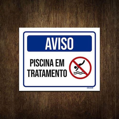 Placa De Sinalização Aviso Piscina Em Tratamento 27X35