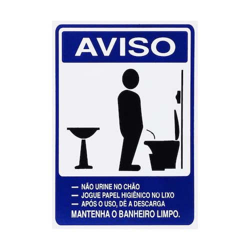 Contém apenas 1 unidade de placa com a escrita "Aviso Mantenha O Banheiro Limpo Masculino".