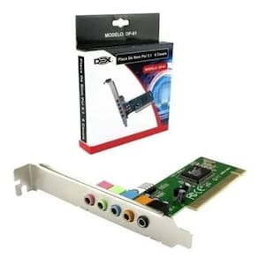Modelo: DEX DP-61 Especificações: - Placa de som PCI 5.1 - Conexão com qualquer porta PCI - Support 3D Positional sound - 24 Bits Estéreo - Virtual 5.1 CH Sound RAC - 1X porta JACK P2 para fone de ouvido - 3X portas JACK P2 para caixas de som Conteúdo da embalagem: - 01x Adaptador Placa de Som Ean: 6955581351215