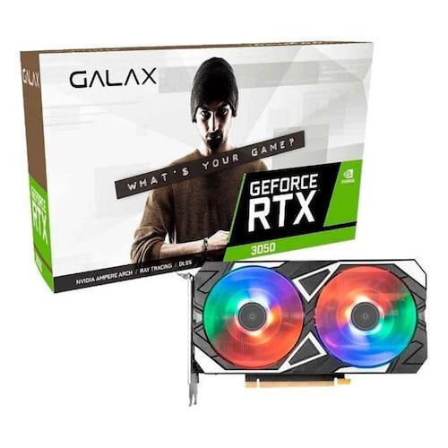 Placa de vídeo galax nvidia geforce rtx 3050 ex, rgb, 8gb gddr6, dlss, ray tracingA linha rtx é a linha mais atual da nvidia: feita com as melhores peças que o mercado pode oferecer, e design super inovador. A rtx 3050 é a junção de todos esses atributos em uma única placa de video extremamente potente.Equipada com ray tracing, faz com que seus jogos fiquem ainda mais realistas. Junto com a tecnologia dlss, seus jogos rodarão ainda mais rápidos sem perder a altíssima qualidade nas imagens, garantindo máximo desempenho em todas as situações.Especificações:Memória de 8gb gddr6 com 2560 núcleos cuda e 128 bitsPotência máxima de placa 130wInterface pci-e 4.0 x8 e slot físico x16Com 3 entradas displayport 1.4a e 1 entrada hdmiCom tecnologia ray tracing, trazendo maior realismo nos gráficos de seus jogosTecnologia dlss, fazendo seus jogos rodarem melhor sem perder qualidade nos gráficosSuporte para o directx 12Vem com manual