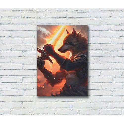 Placa Decoratica Arte Digital MDF 20x28 Revenda Atacado - Arte: Lobo Flamejante