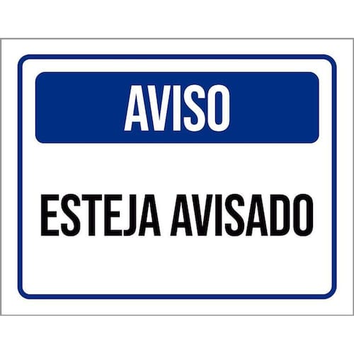 Placa Decorativa - Aviso Esteja Avisado 36x46 Informações do Produto: Placas decorativas fabricadas com poliestireno de alto impacto PSAI de 2mm e impressão ultravioleta. - Medidas: 36cm x 46cm - Fixação: Todas as placas possuem adesivo dupla face para aplicação em qualquer tipo de superfície lisa. de 12 meses e disponibilidade imediata. Marca: Não Informado Ean: 7794722323464
