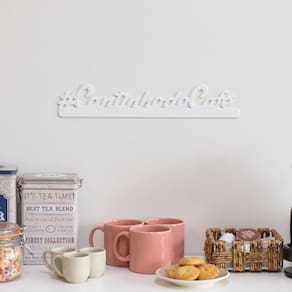 Placa de Parede Aramado Cantinho do Café para dar um charme à sala de estar, cozinha, escritório ou outros espaços dedicados ao preparo e consumo de café. Harmonizando bem em projetos tanto clássicos quanto elegantes Acabamento: Pintura Ambiente Principal: Sala de Estar Cor: Branco Cor do Produto: Branco Escala de Brilho: Fosco Itens Inclusos: 1 gancho e manual de montagem Manual de Montagem e Instalação: https://product-hub-prd.madeiramadeira.com.br/938946/documents/315f6c16-8b4d-4eb2-8bed-18fce2e356fd2310214547817259660930228.pdf Material Principal: Aço Necessita Montagem: Não Peso: 0,2 kg Recomendações de Uso, Manutenção e Limpeza: Recomendável instalação em parede de alvenaria. Para limpeza, utilize sabão ou detergente neutro e esponja macia. Nunca use solventes, objetos cortantes ou abrasivos.