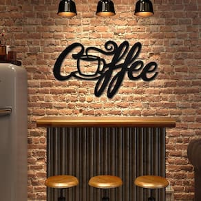 Especificações Técnicas: Medidas: comprimento:30 cm altura: 3mm largura: 25 cm Material: mdf 3mm Cor: preto Tema: café Formas de instalação: basta utilizar fitas dupla face Quantidade: 1 unidade