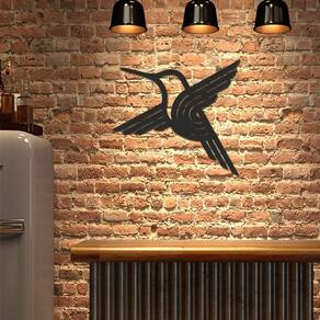 Especificações Técnicas: Medidas: comprimento: 43 cm altura: 3 mm largura: 39 cm Material: mdf 3mm Cor: preto Tema: pássaro Formas de instalação: basta utilizar fitas dupla face Quantidade: 1 unidade