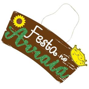 A imagem apresenta um letreiro decorativo com os dizeres Festa no Arraiá, remetendo a festas juninas. A placa tem um fundo marrom com um efeito rústico, simulando madeira. elementos visuais: - Texto: - Festa no está escrito em uma fonte branca com estilo manuscrito. - Arraiá está em uma fonte maior, verde com textura brilhante. - Decorações: - Um girassol amarelo com miolo marrom brilhante está à esquerda. - No canto direito, há uma ilustração de um chapéu de palha amarelo. Fundo: - A placa apresenta um efeito envelhecido com pequenos desgastes brancos. - Há um contorno superior que pode indicar uma alça ou suporte para pendurar a placa. Dimenções: Largura: 15 Comprimento: 33 A arte reflete elementos típicos das festividades juninas, com cores vibrantes e símbolos característicos. Marca: Grinfest