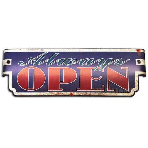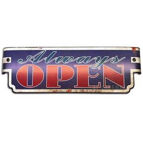 Placa Decorativa de Parede em Metal - ALWAYS OPEN | Sempre Aberto - Vintage