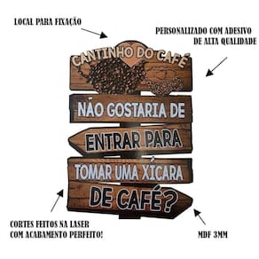 Placa decorativa de parede madeira coffe - cantinho do café Placa com frase coffe de parede em madeira decorativa