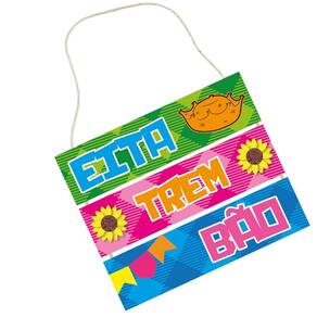 Placa Decorativa - Eita Trem Bão Deixe sua Festa Junina ainda mais animada com essa linda placa decorativa Com cores vibrantes e elementos típicos, ela traz toda a alegria e tradição dessa celebração tão especial. A placa é composta por três partes coloridas, cada uma com uma palavra estampada: EITA no fundo verde, acompanhado de um chapéu de palha. TREM no fundo rosa, decorado com girassóis. BÃO no fundo azul, com bandeirinhas festivas. Além do design encantador, o item conta com um cordão para pendurar, facilitando a decoração do ambiente. Informações do produto: Material: MDF/EVA Ideal para: Decoração de festas juninas, arraiais e ambientes temáticos Destaques: Cores vibrantes, elementos decorativos em relevo e fácil instalação Largura: 24 Comprimento: 20 Dê um toque especial ao seu evento e encante seus convidados com essa peça cheia de charme e tradição Marca: Não Informado Ean: 7899989341821