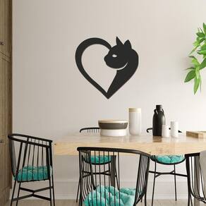Especificações Técnicas: Medidas: comprimento:24 cm altura: 3mm largura: 24 cm Material: mdf 3mm Cor: preto Tema: gato Formas de instalação: basta utilizar fitas dupla face Quantidade: 1 unidade