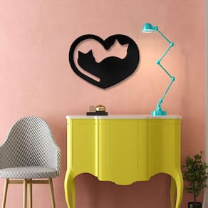 Especificações Técnicas: Medidas: comprimento: 30 cm altura: 3mm largura: 30 cm Material: mdf 3mm Cor: preto Tema: gatos Formas de instalação: basta utilizar fitas dupla face Quantidade: 1 unidade