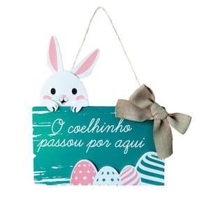 Placa de Páscoa O Coelhinho passou por aqui Verde MDF.