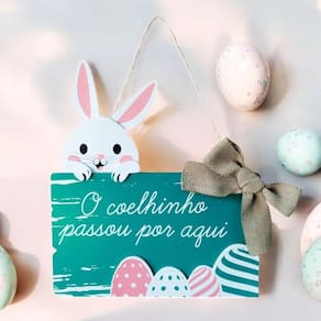 Que decorar sua parede ou porta com essa linda plaquinha temática Com certeza ela vai agregar muito na decoração do seu dia. Sendo de material MDF com excelente acabamento trás também um lindo coelhinho e ovinhos na cor rosa e verde de EVA, além isso para trazer a delicadeza, ela vem com lindo laço de juta. Você e seus convidados vão se apaixonar.