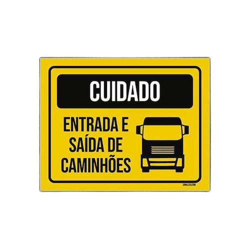 Placa Sinalização Cuidado Entrada E Saída De Caminhões 27X35