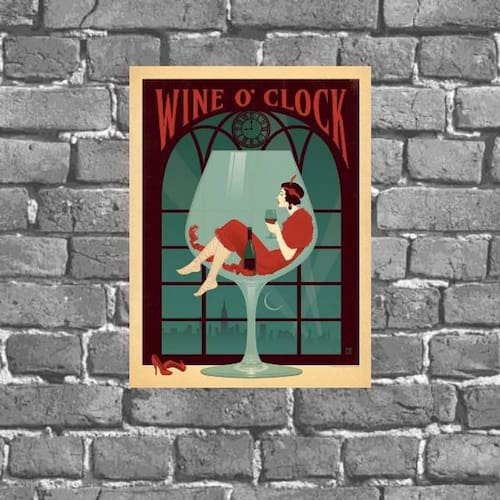 Placa Decorativa Retrô Wine O Clock 18x27cm