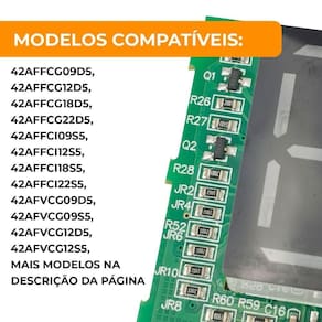 Modelos compatíveis: 42AFFCG09D5, 42AFFCG12D5, 42AFFCG18D5, 42AFFCG22D5, 42AFFCI09S5, 42AFFCI12S5, 42AFFCI18S5, 42AFFCI22S5, 42AFVCG09D5, 42AFVCG09S5, 42AFVCG12D5, 42AFVCG12S5, 42AFVCG18D5, 42AFVCG18S5, 42AFVCG22D5, 42AFVCG22S5, 42AFVCH09S5, 42AFVCH12S5, 42AFVCH18S5, 42AFVCH22S5, 42AFVCI09S5, 42AFVCI12S5, 42AFVCI18S5, 42AFVCI22S5, 42AFVQG09A5, 42AFVQG09D5, 42AFVQG09S5, 42AFVQG09V5, 42AFVQG12A5, 42AFVQG12S5, 42AFVQG12V5, 42AFVQG18S5, 42AFVQG22S5, 42AFVQI12S5, 42AVCG09A5, 42AVCG09V5, 42AVCG12A5, 42AVCG12V5, 42AVCG18A5, 42AVCG18V5, 42AVCG22A5, 42AVCG22V5