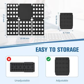 Geniusidea A tábua dobrável para roupas é a solução perfeita para quem quer dobrar suas roupas de forma rápida e fácil com precisão e uniformidade. Diga adeus aos armários e gavetas bagunçados com este prático quadro de pasta de camiseta. Esta pasta de camisetas foi projetada para facilitar as camisas dobráveis, camisetas e outros itens de roupas. Basta colocar sua roupa no quadro dobrável, seguir as diretrizes fáceis de usar e, em segundos, você terá uma camisa perfeitamente dobrada sempre. Chega de lutar com vincos irregulares ou roupas enrugadas! A placa dobrável para camisetas é adequada para todos os tamanhos de camisas e roupas, tornando-a ideal para toda a família. Se você estiver dobrando camisetas para adultos ou roupas infantis, esta pasta de camisetas é versátil e eficiente. Com sua construção durável e design compacto, esta tábua dobrável de roupas é perfeita para uso em sua lavanderia, armário ou até mesmo durante viagens. Mantenha suas roupas organizadas e sem rugas com este prático quadro de roupas dobrável. Não perca tempo e energia dobrando roupas à mão. Invista na pasta de camisetas Geniusidea e simplifique sua rotina de lavanderia hoje! Diga adeus aos armários e gavetas bagunçados com esta conveniente pasta de roupas. Peça o seu agora e facilite as roupas dobráveis! - Economia de espaço: tamanho completo 54 x 63 cm, dobra até 27 x 22 cm para facilitar o armazenamento, particularmente benéfico em espaços pequenos - Fácil de usar: não é necessário montar, qualquer um pode obter dobras consistentes e limpas com a ajuda de uma pasta de camisa - Alta qualidade: a pasta da camiseta é feita de material PP atualizado, durável e resistente - Versatilidade: o quadro dobrável da camisa é adequado para camisetas, camisas, suéteres, calças, jeans e vestidos - Adequado para roupas de quase tamanho: para tamanhos maiores, dobre a parte que se estende além da pasta de roupas em direção ao centro