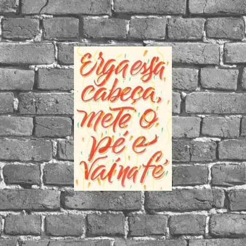Placa erga essa cabeça mete o pé vai na fé 18x27cm Informações do produto tire todas as suas dúvidas no descritivo abaixo: placas decorativas são tendência e uma excelente ideia para decorar ambientes de forma econômica e bonita, elas são leves e extremamente fáceis de instalar; além de servir para a decoração de qualquer ambiente, indo desde estabelecimentos como barbearias e bares, até quartos, sala, área de lazer, churrasqueira, etc. Ou ainda, e por que não, poder quebrar aquele galho tampando imperfeições indesejadas da parede com um toque especial medidas - cada peça tem 18x27cm. Material do papel - papel fotográfico brilhante de altíssima resolução - de 3 meses. Marca: Não Informado Ean: 7892090546055