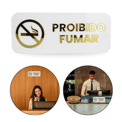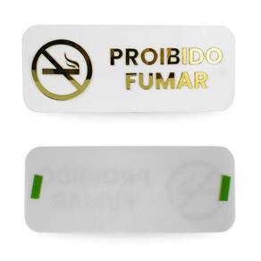 01 - Placa de Acrílico Proibido Fumar, Branco e Dourado