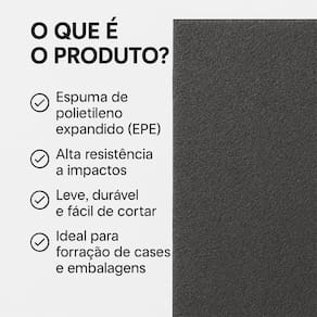 Placa Ethafoam 1 Unidade EPE Espuma P/Case 60x50x4cm Grafite Descrição Se você precisa proteger objetos delicados no transporte ou na armazenagem, essa placa de espuma EPE polietileno expandido é a solução ideal Perfeita para forrar o interior de cases, maletas, embalagens técnicas, caixas organizadoras e muito mais. Como usar: Basta medir o interior do seu case ou maleta, cortar a espuma no tamanho desejado com estilete ou tesoura, e encaixar. Você pode também esculpir o formato exato do item que deseja proteger, garantindo um encaixe preciso e seguro. Dica: Use camadas de espuma para proteger equipamentos maiores ou mais frágeis, como instrumentos musicais, câmeras, drones, ferramentas e aparelhos eletrônicos. A densidade da espuma ajuda a absorver impactos e evitar danos. vantagens do produto: Alta resistência a impactos Leve, durável e fácil de manusear Pode ser moldada conforme a necessidade Células fechadas: não absorve umidade Cor grafite: visual discreto e profissional Seja para ou pessoal, essa placa de espuma é uma escolha inteligente para quem valoriza organização, segurança e acabamento de qualidade. Dimensões: Espessura: 4cm Largura: 50cm Comprimento: 60cm Contéudo: 1x Placa Ethafoam EPE Espuma Para Case 60x50x4cm Grafite Marca: Não Informado
