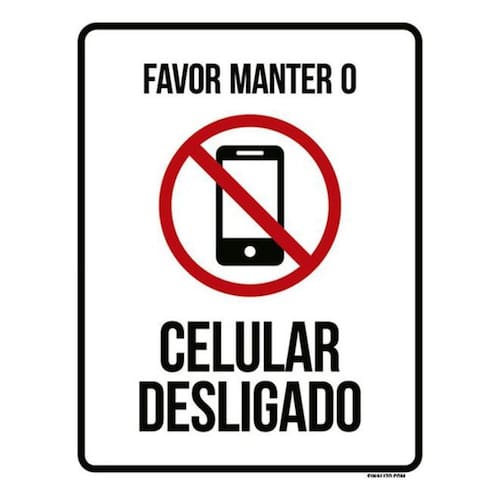 Placa Favor Manter Celular Desligado Ícone 36x46 Placas de sinalizaço fabricadas com poliestireno de alto impacto PSAI de 2mm e impressão ultravioleta.