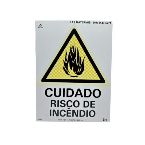 Placa Fotoluminescente de Alerta Incêndio 15x20cm - SIG