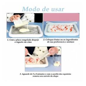 Placa fria para sorvete - faça rolos gelados em minutos Forma para fazer sorvete feita de aço inoxidável e alumínio de qualidade alimentar capacidade em volume: 0.3 l Tempo de preparação: 18 m Material: aço inoxidável Inclui livro de receitas: não Inclui acessórios: sim É kit: não