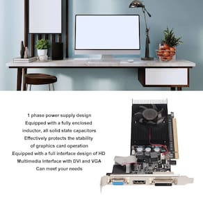 Para suporte ao DirectX: Para gráficos DirectX11 Consumo de energia: 60 W Fonte de alimentação externa: Nenhuma Fonte de alimentação recomendada: 200 W Refrigeração da placa gráfica: Saída de resfriamento a ar Portas: interface multimídia HD, VGA, DVI