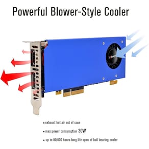 - Consumo máximo de energia de 30W: alimentado por PCI-e 3.0 bus x4 x8 x16 compatível, não requer nenhum conector de alimentação adicional, consumo de energia de carga total TDP 30W, economia de energia, recomendação mínima de PSU de 300W.