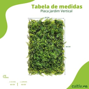Características * Aparência Realista: Folhagens com mescla de tonalidades aparência natural * Versatil: Perfeita para decoração de festas, eventos, varandas, escritórios, áreas de lazer e muito mais. * Material: Plástico de alta durabilidade, resistente. * Dimensões: 60 cm de altura por 40 cm de largura. * Instalação: Pregos, parafusos, abraçadeiras de nylon ou ganchos