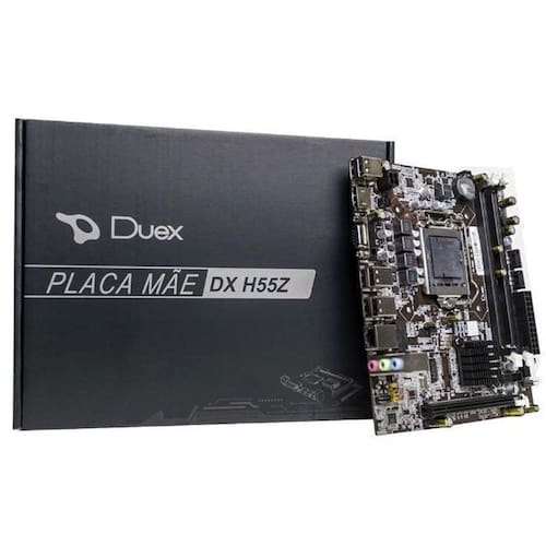 Placa Mãe DUEX H55 é ideal para uso doméstico e empresarial, tem tudo que você precisa para funcionar seu pc em tempo integral, qualidade e confiabilidade. A Placa mãe DUEX atua no mercado nacional de informática com fabricação de computadores, monitores, memórias, SSDs, fontes reais e nominais, placas mãe, periféricos, gabinetes, coolers e fans, entre outros.
