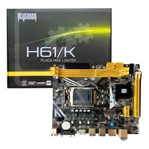 Placa mae revenger g-h61/k - Descrição a placa-mãe h61 revenger 1155 possui slot m2 além de ser gigalan é compatível com processadores intel celeron, pentium, core i3, i5 e i7 de 2 e 3 geração, suportando ate 16gb de memória. A placa-mãe h61 possui desempenho incomparável no trabalho ou em casa. Descrição: - socket 1155 - chipset: intel h61 - suporta memória ddr3 1066/1333/1600 mhz até 16gb. - slot de expansão: - slot m2 - 1 x pci express x16 2.0 - 1 x pci express x1 - armazenamento: 4x sata - áudio: com 6-channel hd audio codec onboard - lan: 10/100/1000mbps chip realteck 8106e - portas usb: 6x usb 2.0 + - painel interno - 1 x conector de energia atx 24 pinos - 1 x conector atx 12v - 1 x conector usb, para até 2 usb 2.0 - 1 x faudio - 1 x fpanel - 1 x conector do altofalante - 4 x sata 3gb/s conteúdo da embalagem: - 1 placa mãe h61 - 1 cd de drivers - manual de instruções. - 1 cabo sata - espelho traseiro Características gerais do produto: Material: plastico : 90 Marca: Não Informado Ean: 7908611100573